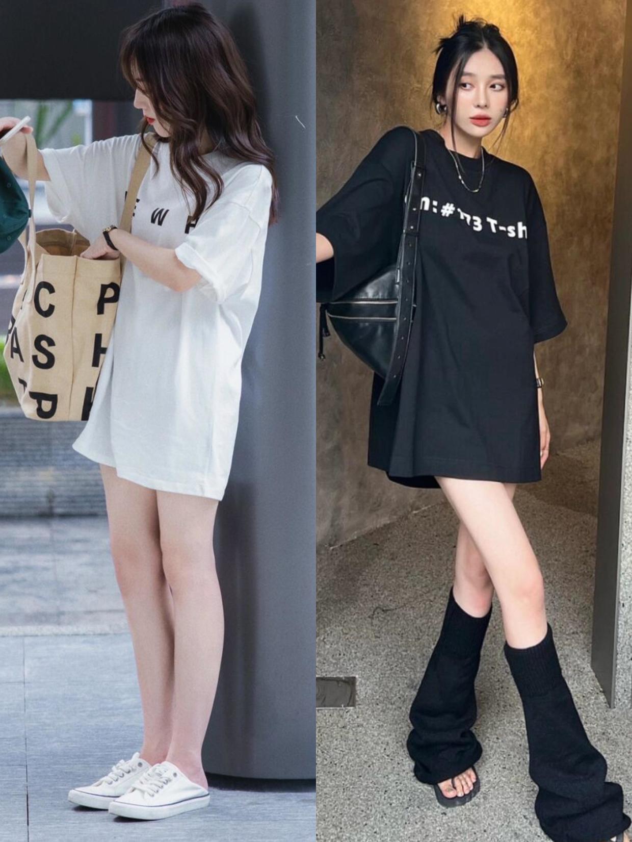 If a long, loose-fitting T-shirt is paired with trousers or a long skirt, it will easily look out of proportion. At this time, we might as well try it Try out the now popular way of wearing missing bottoms. Pair it with leggings or shorts to show off your leg lines vividly. This combination will be a highlight no matter where you go.