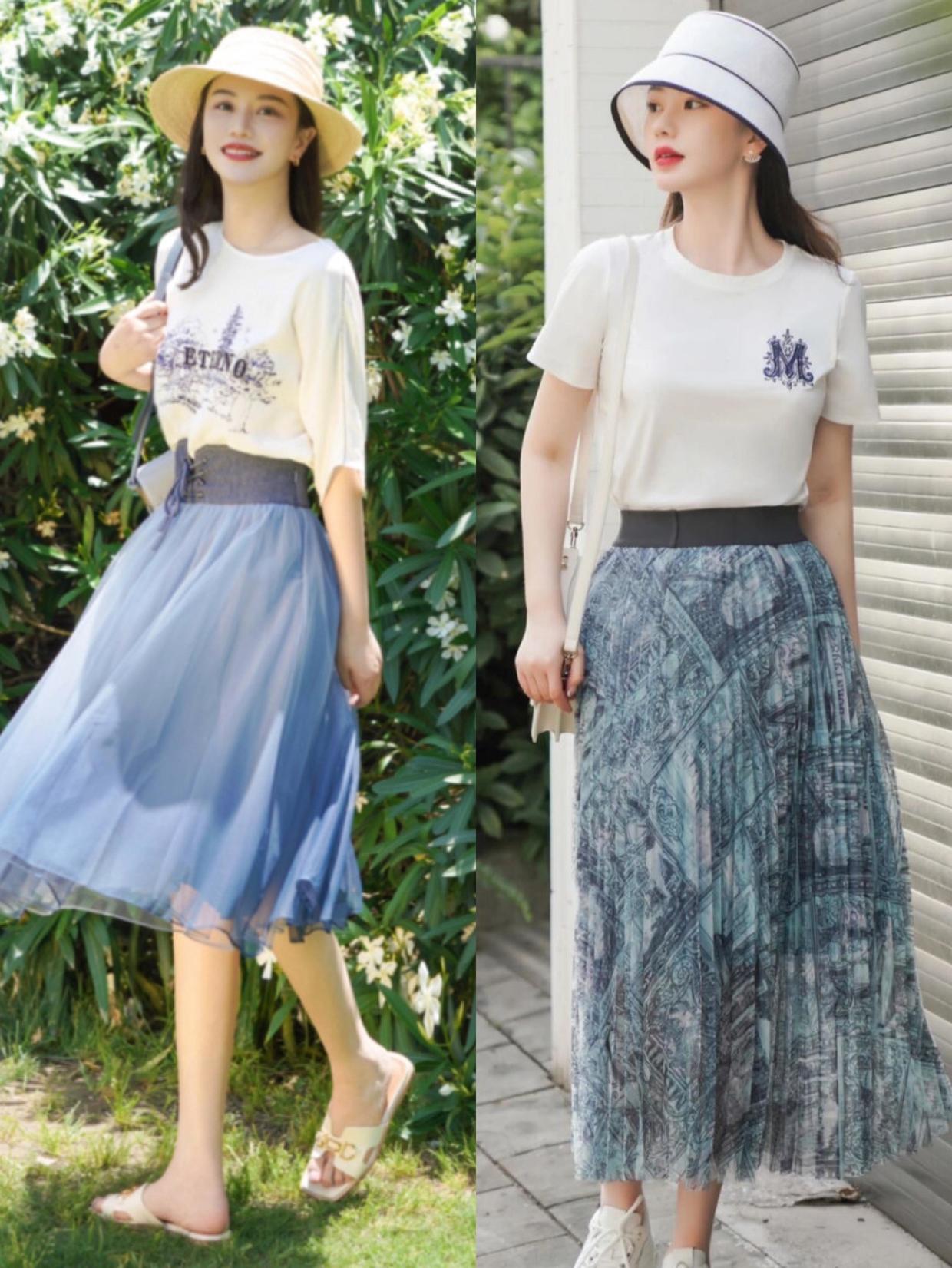 The chiffon material itself is very elegant and dynamic. When integrated into a skirt, it can make us look full of fairy spirit while walking. Full of beauty. Many people may be used to wearing a shirt on top of such a skirt, but in fact, a T-shirt is also a good choice. In this way, the design of the skirt can be better highlighted, and the styling elements will not appear too rich.