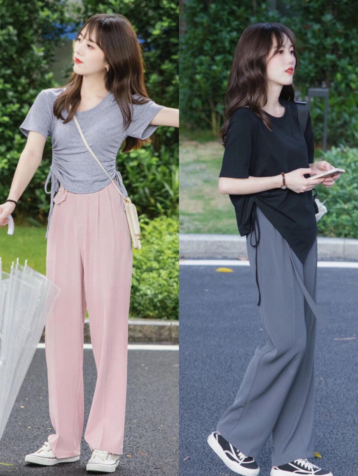 at Many people have the impression that T-shirts are loose and can easily cover the waistline. A T-shirt with a pleated waist design on the waist can perfectly solve this problem. It can not only outline a slim waist, but also look more stylish. Everyone should still pay attention to showing their waistline when matching clothes, so that their figure will appear more curvy.