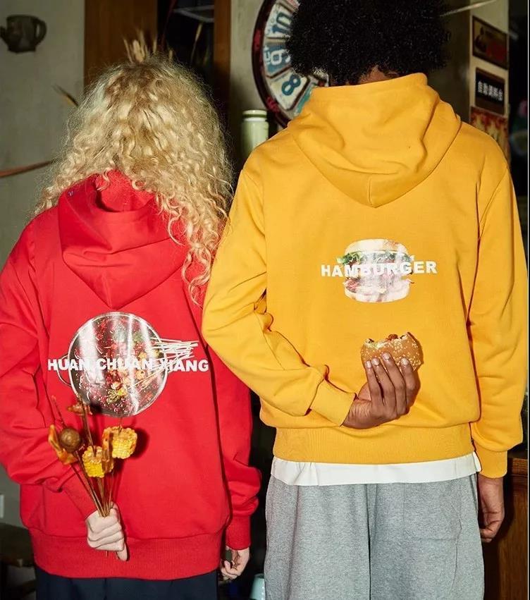 The 2018 Ele.me joint list includes “burger-flavored and chili-flavored sweatshirts”, “food-printed pillow hats”, ” Young and interesting creative designs such as “Life-Resisting Water Accessories”, “Menu T-shirts + Takeaway Delivery Bags”, “Eatable Sweatshirts” are trying to impress young users with the concept of #家家吃不吃#.