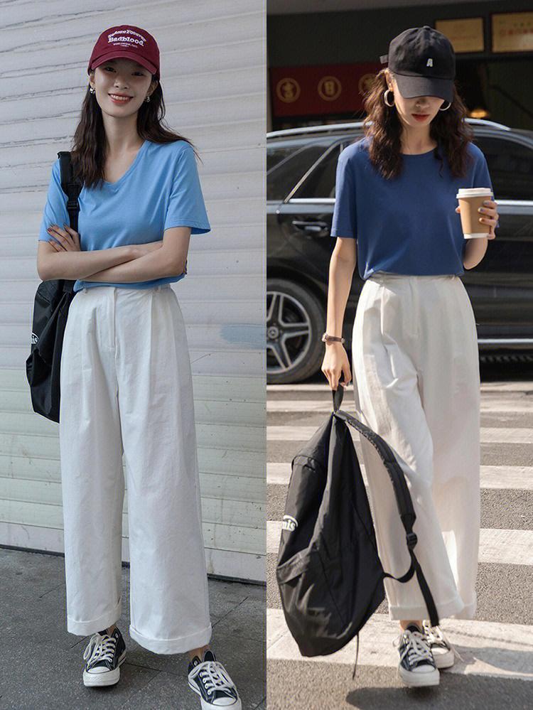 Third, the fashionable combination of summer T-shirt + wide-leg pants
