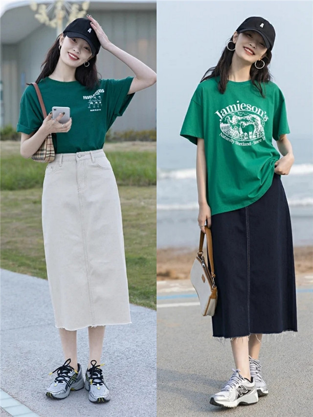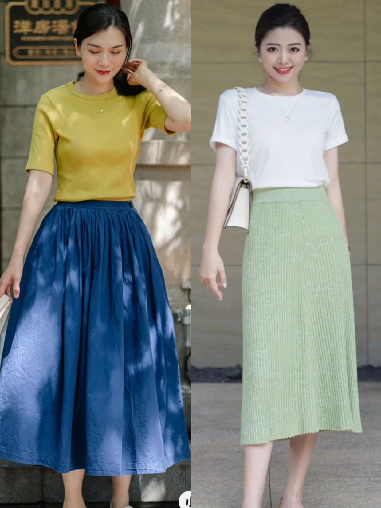 Elegant women will have all kinds of fashionable skirts in their wardrobes. There are many popular styles of skirts in summer. When you don’t know how to match them, you can try pairing them with a T-shirt. This kind of outfit is very casual, like This kind of T-shirt paired with a skirt is both elegant and fashionable, without looking old-fashioned or too serious.
