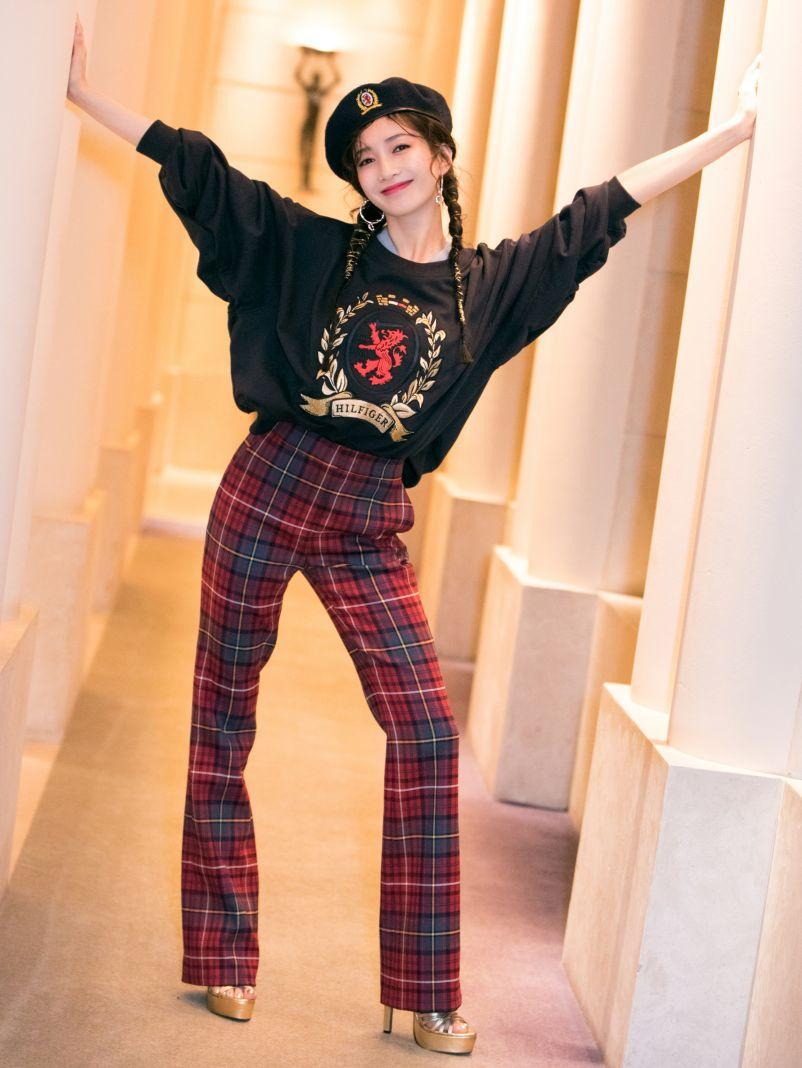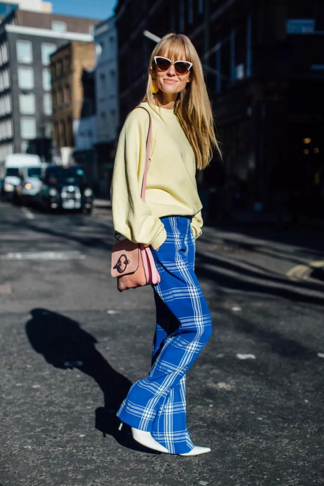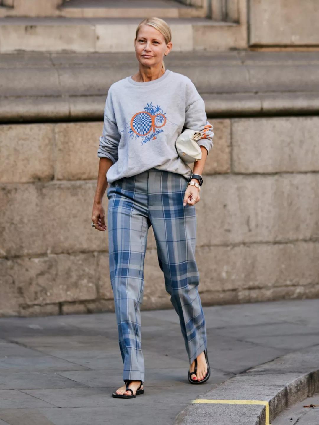 Solid color If the color of the sweatshirt is more eye-catching, then when choosing wide-leg pants for the lower body, the pattern and color can also be of the same color. You can also choose different fashion elements for embellishment, such as classic plaids, stripes or printed elements. These will not conflict with solid color sweatshirts. For the shoes on your feet, just choose solid colors, and then pair them casually with an exquisite small bag, which will make you full of ladylike temperament.