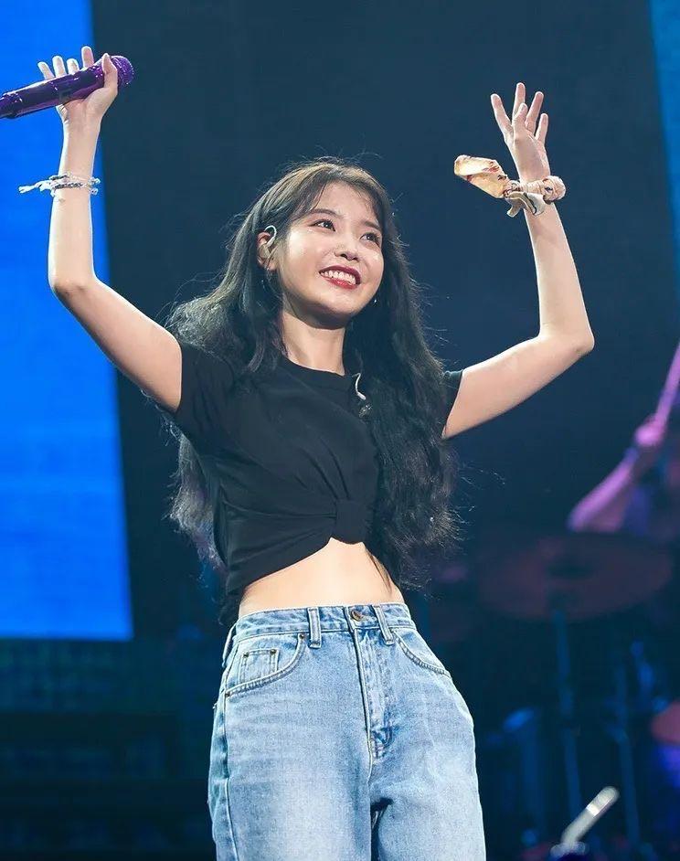 Although girl groups like to knot modified T-shirts behind the back, but like IU, the method of knotting in the front, It can also show good results. After tying, the technique of tucking the clothes in reverse can form an inverted V shape in front of the body, which has a better effect on body modification. At the same time, the knotting Traces can also add a sense of design to an otherwise ordinary T-shirt.