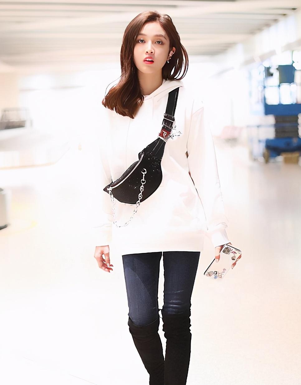 Of course, if you feel that your waist curve is not thin enough for you to take out your hands, a hooded sweatshirt like this that can cover your butt is also a good choice.