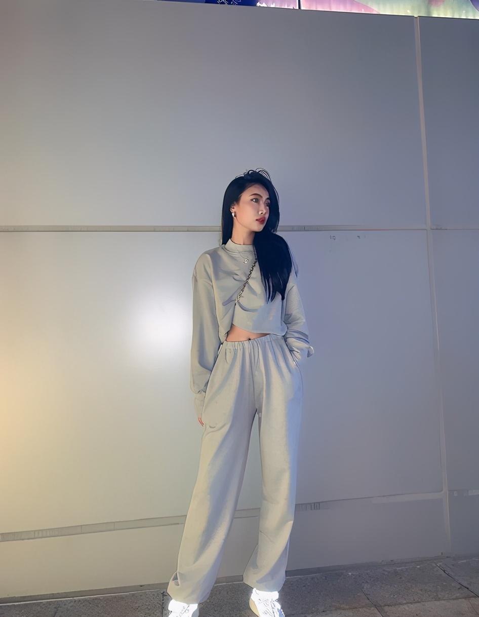 Correct demonstration 1: short sweatshirt + high-waist casual pants
