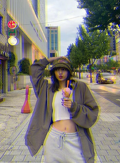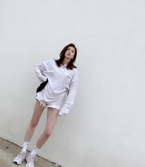 Jiang Shuying‘s look is a light sweatshirt with an oversize design, creating a casual and lazy effect. Paired with a pair of white raw-edged shorts, it can be directly used with the help of the wide top. Wearing shorts that cover yourself gives the feeling that your lower clothes disappear, making your legs look slimmer and longer.