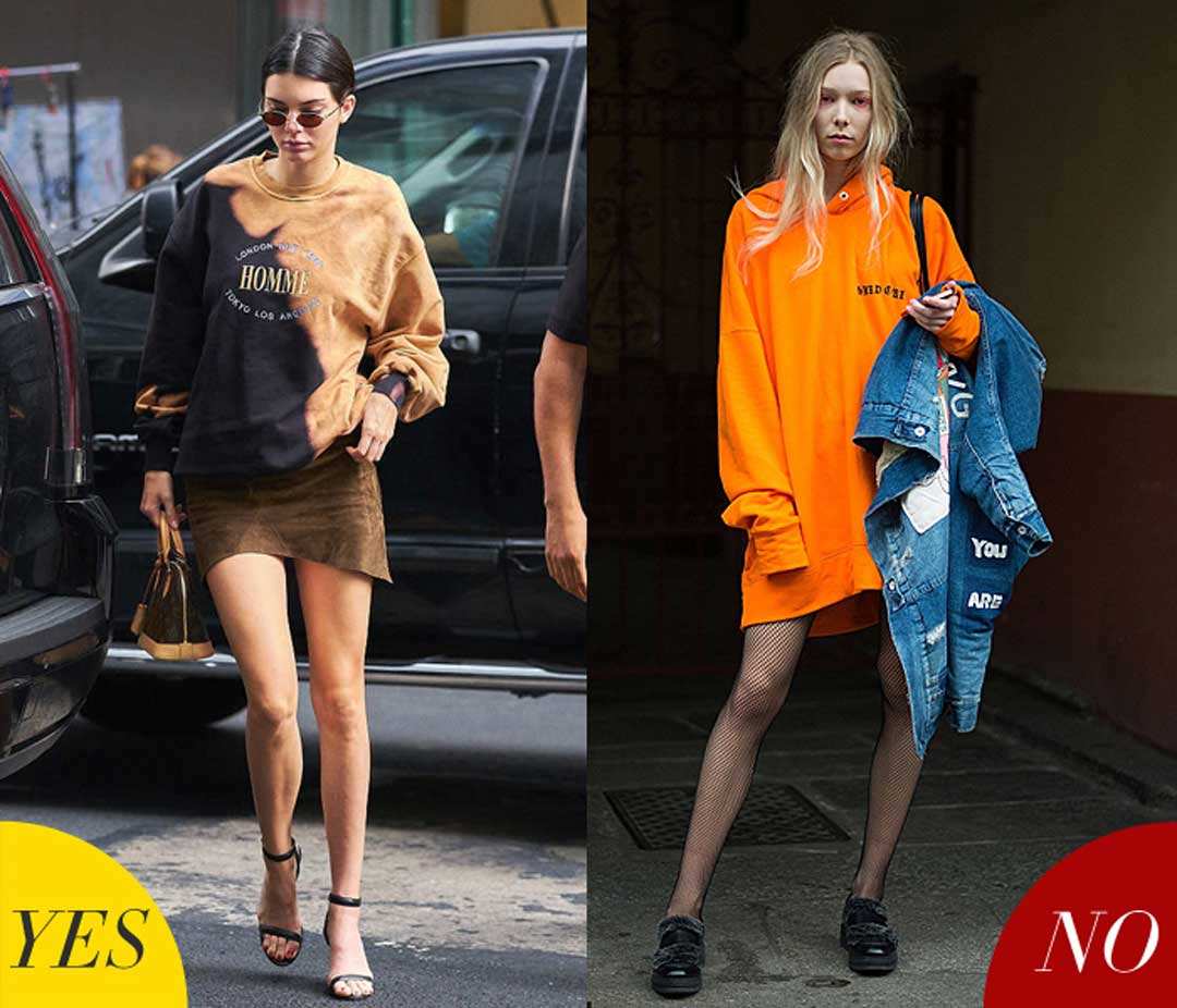 Correct demonstration 2: oversize sweatshirt + tight yoga pants