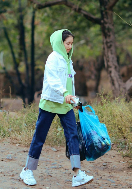 When using this set of combinations for fashion modeling, there is actually no need for particularly complicated techniques. A simple combination of the same color can already bring out a full sense of fashion. A white casual sweatshirt, paired with leggings of the same color, creates a clean and casual effect. A washed and bleached tie-dyed denim jacket highlights the overall look of a high-end simplicity.