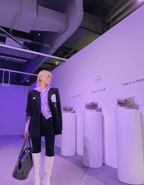 A hooded sweatshirt with a lavender design, which has a more romantic atmosphere and is more fashionable than those basic colors. It is paired with a dark-colored tight-fitting design. Jeans, paired with white knight boots, make our legs look slender and long, and paired with a black suit, the overall look exudes a trendy and fashionable feel.