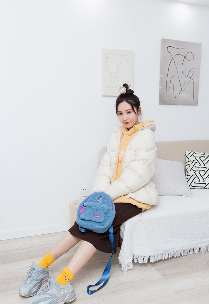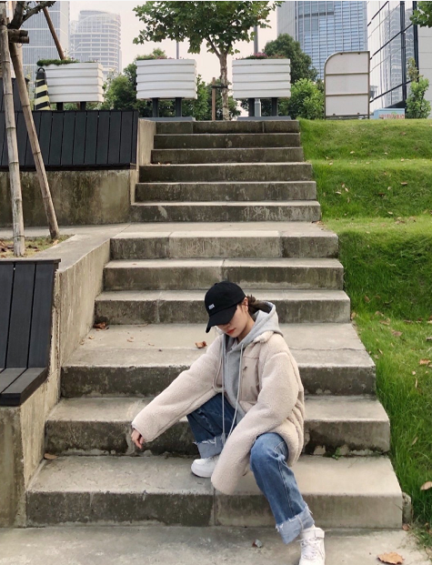 In addition to the ordinary cotton clothing styles, the lamb wool design, which is more popular this year, is also a good choice for our fashion styling. A gray sweatshirt with a casual basic design is paired with a pair of high-waisted wide-leg pants with rolled edges to create a fashionable and casual effect. It is paired with an off-white lamb wool cotton jacket to create a fashionable and slightly cute style. , highlighting the unique charm of younger girls.
