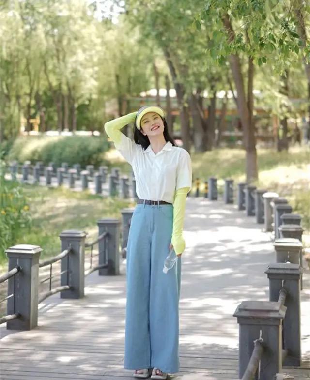 The lower body is paired with high-waisted denim wide-leg pants, with a black belt as a transition,visual sense Promote strengths and avoid weaknesses, which is extremely good at modifying the figure.