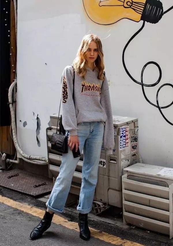 So girls who do not have an advantage in height can avoid choosing large-size sweatshirts and try not to try them because they really can’t control them. You can choose short ones. It is a stylish sweatshirt, but you can choose the length appropriately according to your weight. Pair a short sweatshirt with high-waisted pants or skirts, and you will win visually in terms of height.