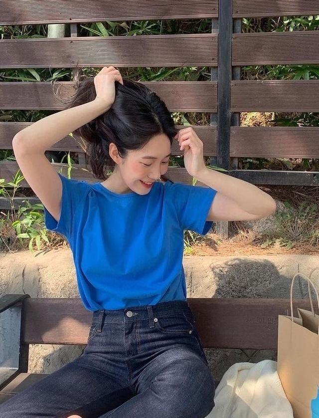 For girls who like youth and color, and want to show their matching skills in this season, you must try theblue T-shirt that shows skin color .