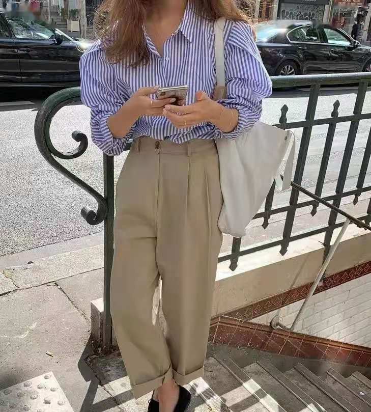 The so-called granny pants do not refer to one type of pants,but a combination of multiple pants Its trouser legs are neither wide nor tight. It is an upgraded version of wide-leg pants and cigarette pants. It not only retains the looseness and comfort of wide-leg pants, but also incorporates the slimming and slimming effect of cigarette pants. The overall look is elegant. Wide bottom and narrow trousers.