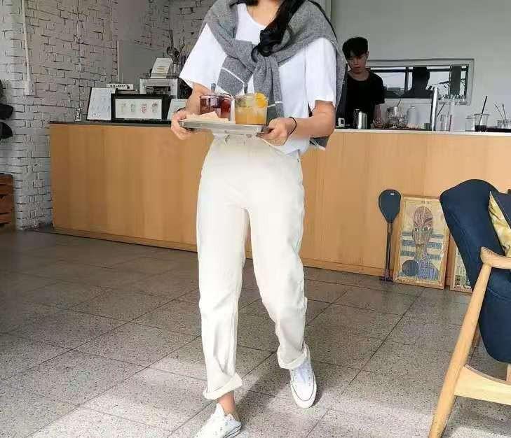 White granny pants are versatile and can hold T-shirts of various colors.For example, match it with a black T-shirt, brown T-shirt, dark red T-shirt, etc. No matter what kind of T-shirt it is paired with, when paired with white granny pants, it will not look dull and easily look fashionable.