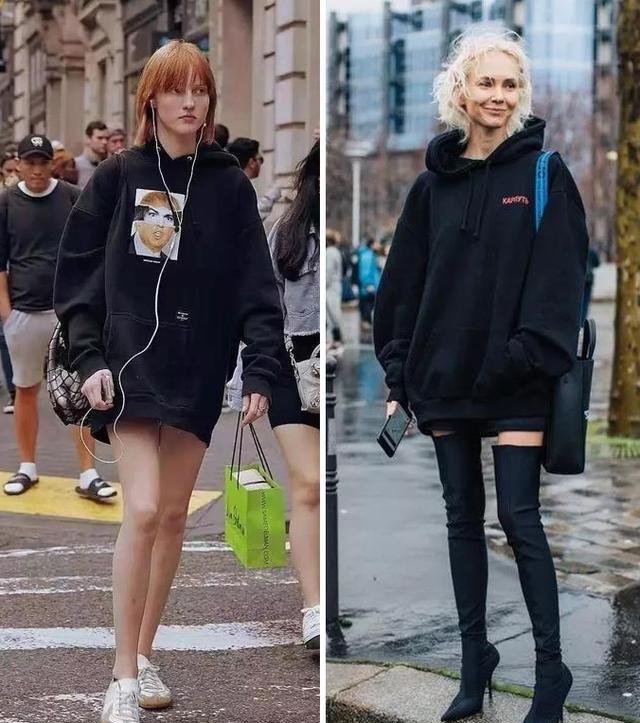 So don’t blindly follow the trend and choose a looser version when wearing a sweatshirt, otherwise you will end up wearing someone else’s clothes. The visual sense is really not good.