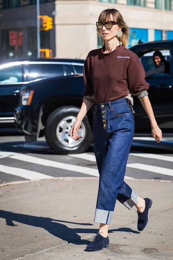 SoMature women must not step on the trap, try not to wear sweatshirts with leggings, You can choose suit trousers, jeans, or a skirt. This combination will make you more capable, elegant and sophisticated.
