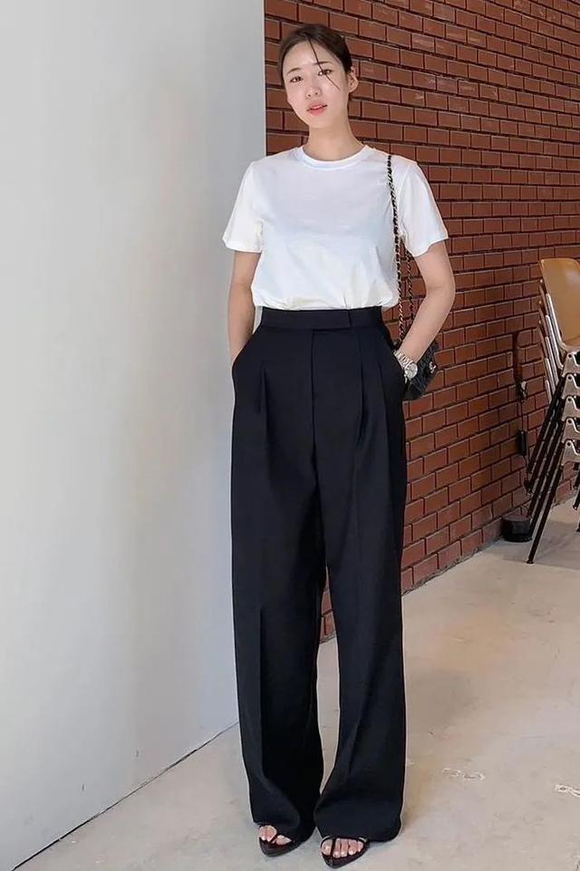 First of all, Don’t choose a T-shirt that is too loose. Loose styles are very popular nowadays. , and are very comfortable to wear, but wide-leg pants are also loose-fitting. If the width of both pants is much larger than your body size, they will look very bloated, which is very unfriendly to fat women.