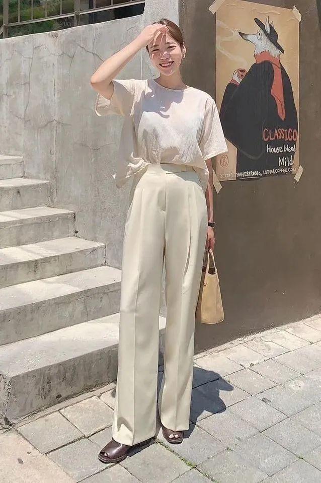 The most popular type of trousers in summer are wide-leg trousers. This kind of single product has become the latest trend in the past two years. The most popular fried item. Combining two classic and fashionable items, a T-shirt and wide-leg pants, can be called the strongest CP in summer. It can be fashionable and practical at the same time.