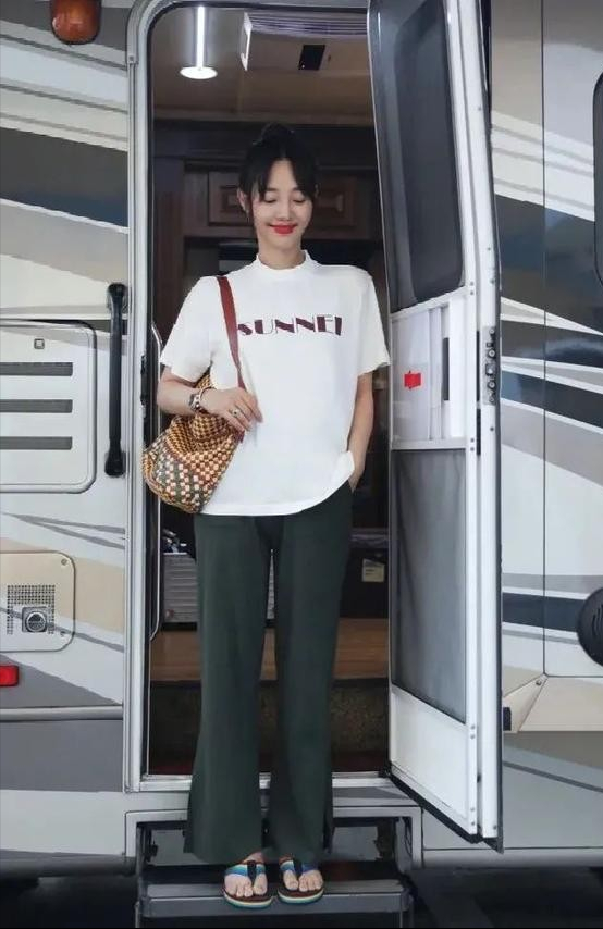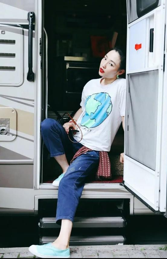 The T-shirt Liu Wen wears is very simple, but it has a certain print design, but it is not exaggerated at all. The color combination of white and blue is used to interpret the fashion sense and match It is also a pair of pure white straight pants, with only a black belt as an embellishment. It does not have much skill, but it makes the white shirt look very fashionable. It is the real king if it is loose and just right.