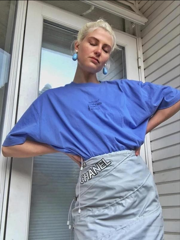 For older women, if you want to wear tulle materials, you can choose this looming upper and lower splicing style, paired with a black printed T-shirt. The combination of time and space is also a manifestation of color, and it also returns to the most classic color matching.