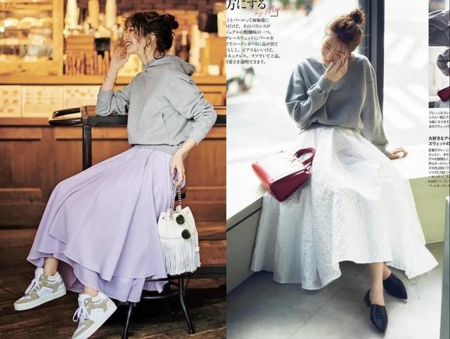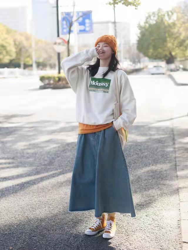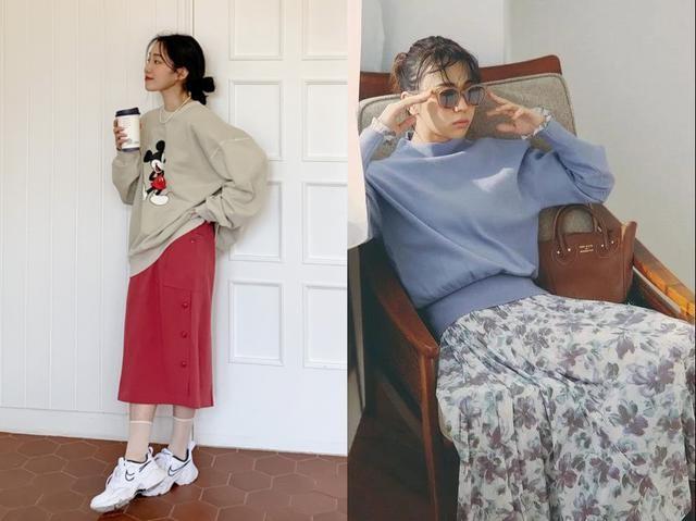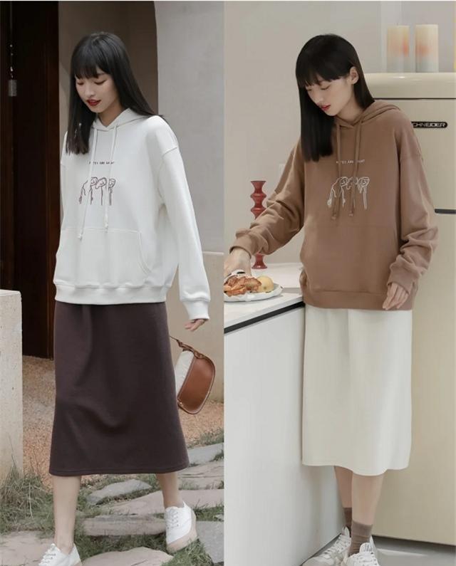 Sweatshirt + skirt = the “king combo” for autumn, slim and fashionable, easy to see!