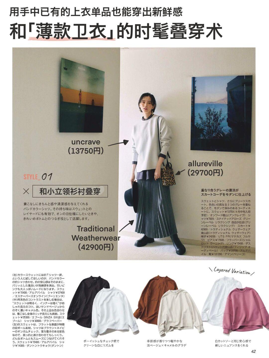 In addition to being worn alone, hoodless sweatshirts can also be used as inner wear. Of course, hooded ones can also be used. , but the hoodless one may be lighter. A small shirt is used as an inner layer, and a sweatshirt and a small windbreaker jacket can be used to enhance the overall temperament to the highest level without being too serious.