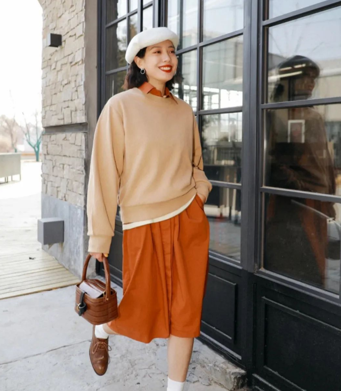 When wearing a sweatshirt in spring, you need to pair it with the right “pants” to look good! Wearing this fashionable style reduces your age and gives you a high-end feel!