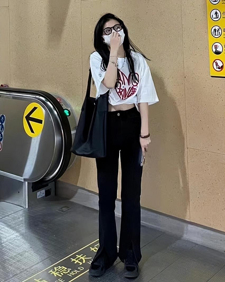 For petite girls, if you want to achieve a satisfactory heightening effect, the combination of navel-baring short T-shirts and trousers is absolutely the best option. ,Through the short design of the T-shirt, you can confidently show off your small waist. In contrast to the loose hem, the upper body looks slimmer, and the matching high-waisted trousers expose the skin at the waist. With the help of it, the legs will look slimmer and longer, creating a satisfying slimming effect.