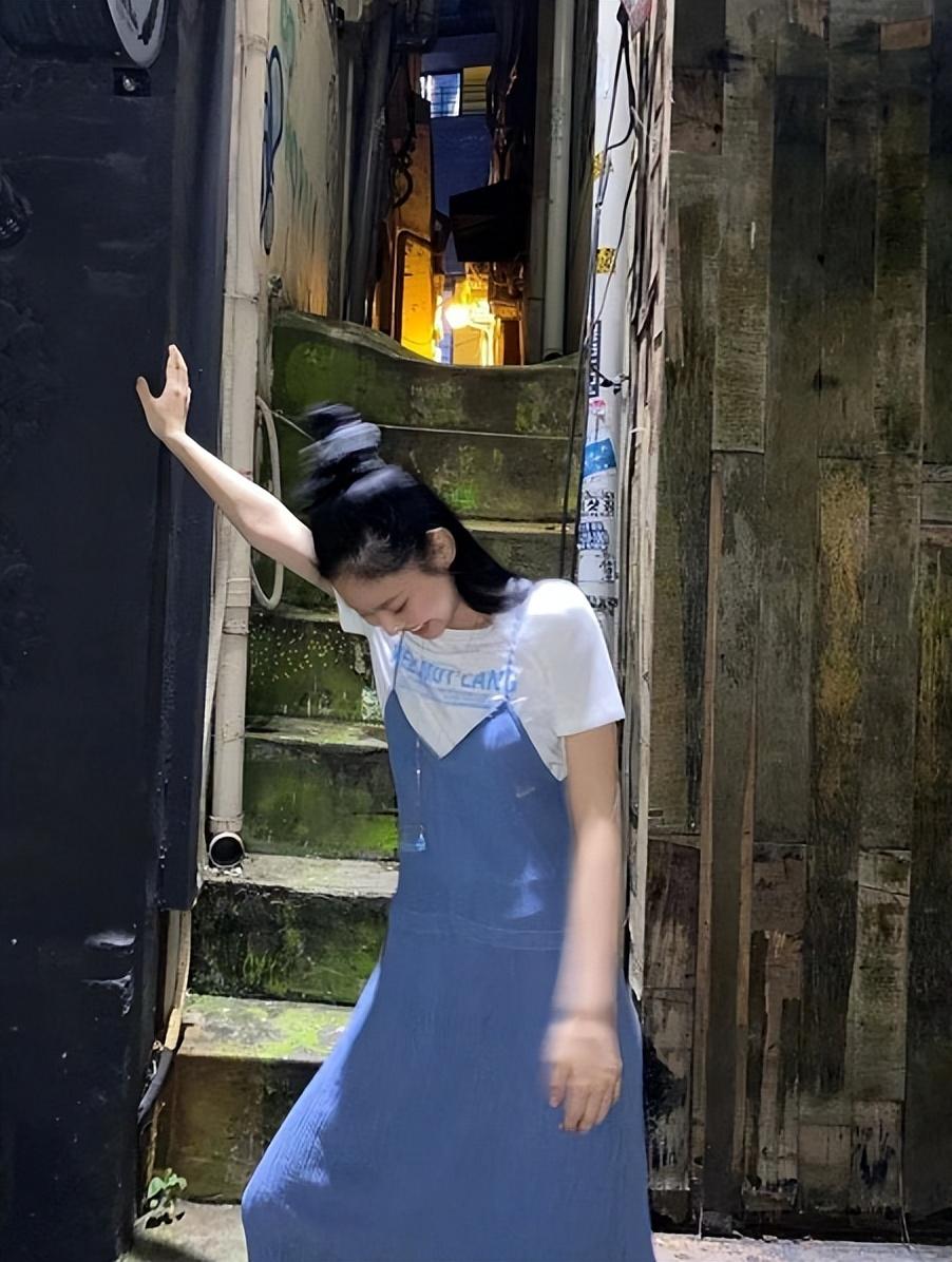 For girls who take the cute route Speaking of, when choosing a combination of T-shirt and suspenders, you can consider this suspender dress design with an age-reducing charm. The light and breathable denim blue design, combined with the extremely thin suspenders and V-neck, fully shows that it belongs to summer. The freshness and beauty of the day, and the slim white short T-shirt worn inside, with a clean and refreshing background, make the overall combination look more youthful and pure, which is very exciting to look at.