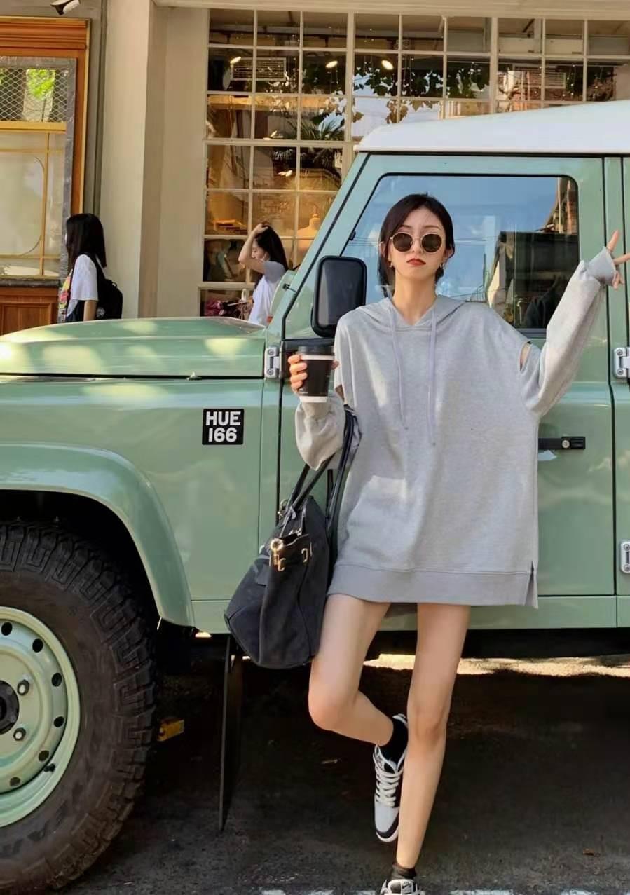 For example, thinkWhen you want to play with the “missing bottom” trend, it’s best to choose this kind of knee-length sweatshirt with the length reaching to the knee.