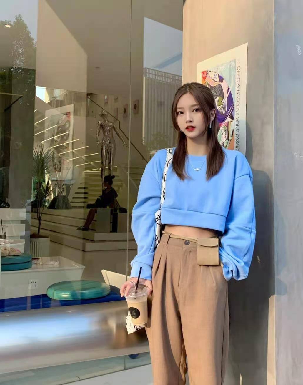 Sisters who want to look taller should choose navel-baring sweatshirts and use the short hem to raise the waistline and lengthen the legline to achieve a more visible appearance. High purpose.
