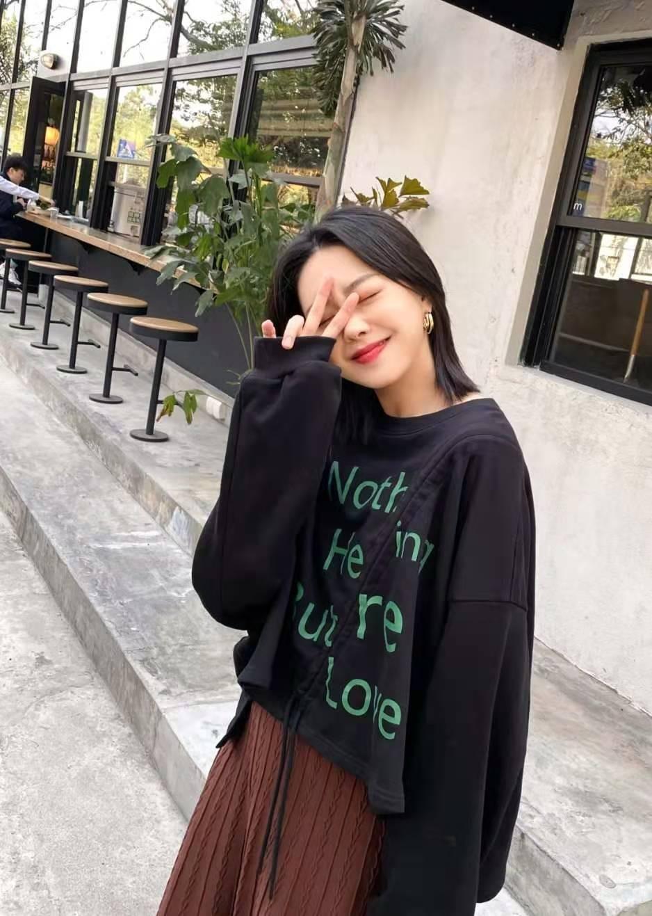 Sweatshirts with puff sleeves like this are more suitable for people with long arms, and only they can hold them up to create a A feeling that is lazy and casual yet sweet.