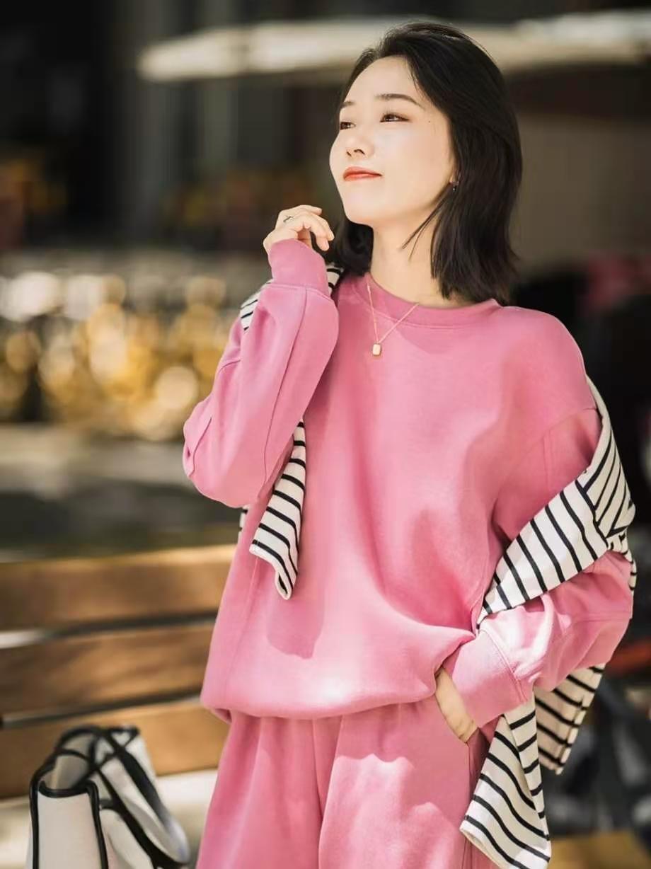 Girls who don’t have the need to cover their muscles and look slimmer may wish to try “sweatshirt + wide-leg pants”, which can not only create a lazy look Fashion effect and high comfort.