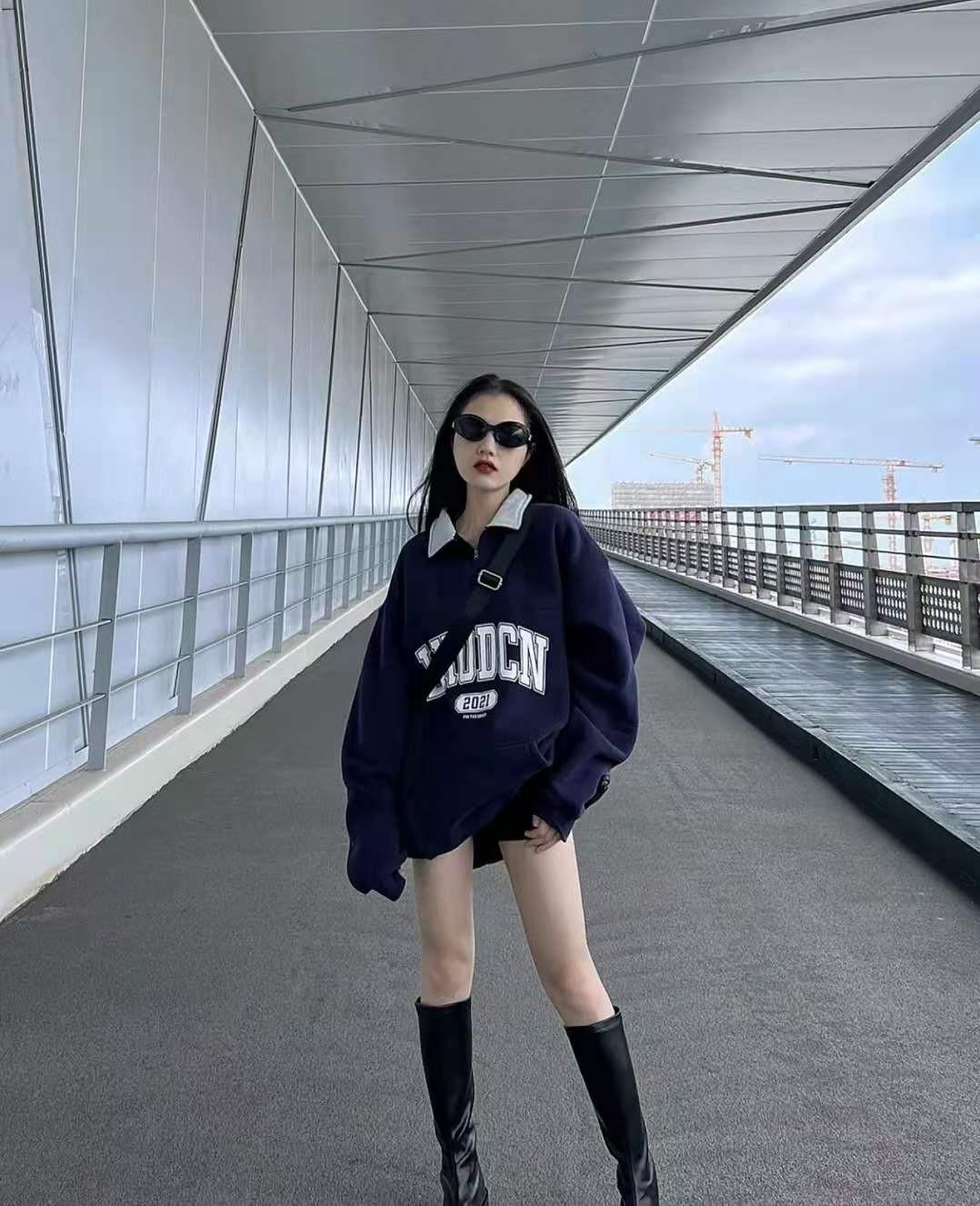 As for what kind of boots are the most fashionable and long-legged when paired with a sweatshirt? It is strongly recommended that you try black boots. They are versatile, not easy to go out of style, and are more slimming and slimmer than boots of other colors.