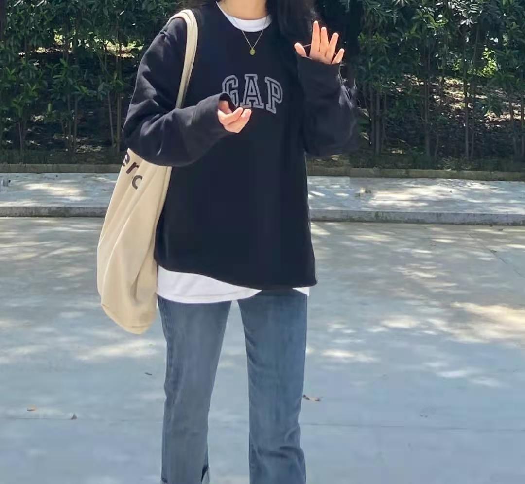 The first point is that the length of the white T-shirt must be longer than the length of the sweatshirt. Otherwise, there is no difference between wearing it or not. But it’s not good if it’s too long. If it’s too long, you won’t be able to achieve the “fake two-piece” effect. It’s best to keep it about ten centimeters.