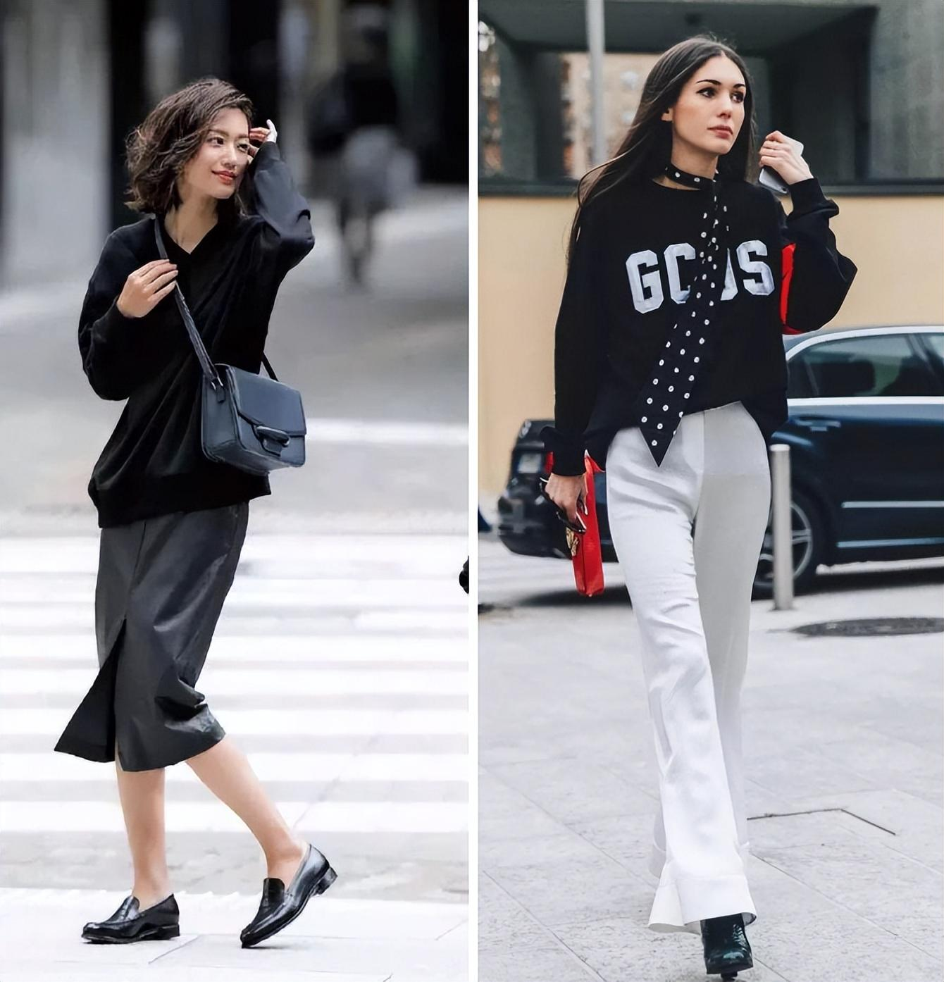 Or you can choose to mix and match when matching, for example, using different materials like sweatshirt + leather singlet brand or sweatshirt + silk/satin, etc. The collision brought by this mix will make the outfit more special. Of course, a sweatshirt is also indispensable for wearing accessories, especially a round-neck sweatshirt. Silk scarves and pearl necklaces are very elegant.