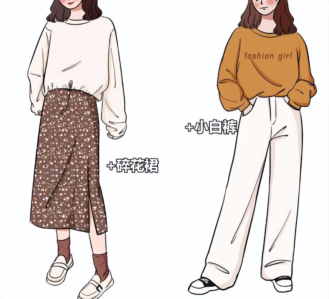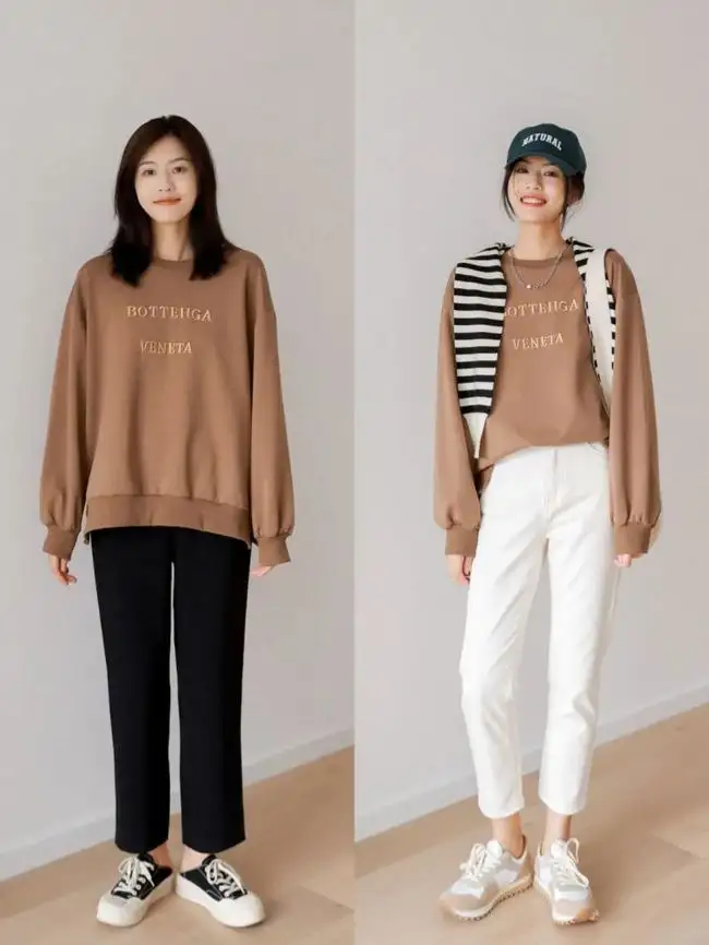 As for sweatshirts, when we wear them daily, we need to pay attention to making more use of layering, matching colors, etc. to enrich the layering of the wear. For example, wearing a sweatshirt or shirt underneath, matching a skirt of the same color, etc. can make the sweatshirt more fashionable: