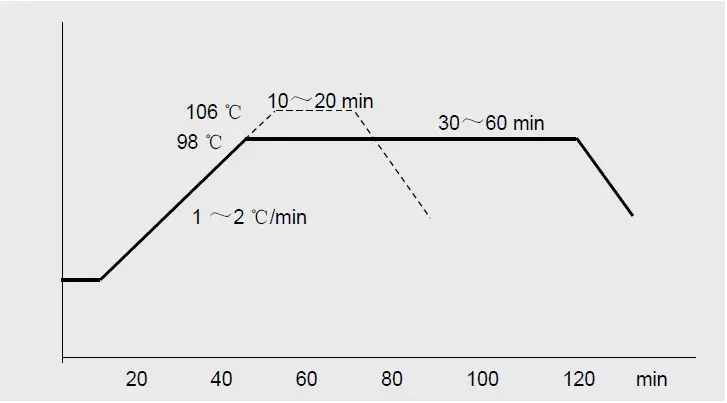 60℃ , T↑, the disulfide bond is opened and the dyeing rate increases. Control the temperature in the early stage to improve level dyeing; dye at 95~100℃ in the later stage and keep it warm for 30~60 minutes.