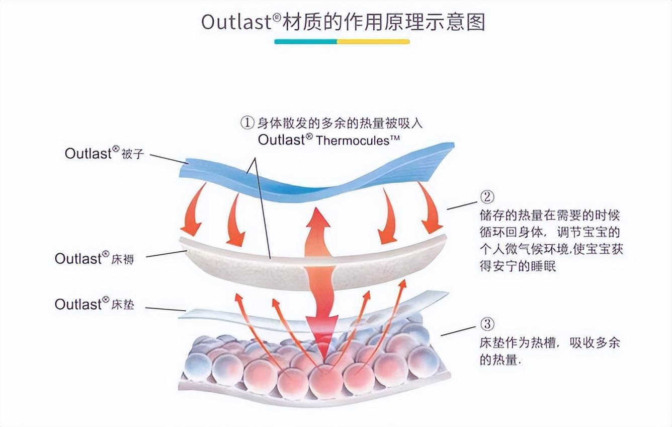 相变调温纤维利用物质相态转变时吸收或放出热量的原理,双向调节身体微环境温度,在环境温度较高时具有吸热功能,在环境温度较低时具有放热功能。Outlast纤维就是一种通过相变调节温度的人造纤维素纤维,它在粘胶纤维中掺入微胶囊,使用微胶囊包裹热敏相变材料碳氢化蜡,随着温度变化,发生固态、液态的相互转化,从而达到吸热、放热的效果。