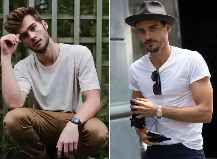 The V-neck has a relatively deep opening, and is often accused of being a “sissy” in the clothing industry. But a V-neck white T with a suitable depth is not only refreshing and comfortable to wear, but also has a summer feel; it can also modify the neck line, lengthen the visual sense vertically, modify the face shape, and show the charm of male hormones.