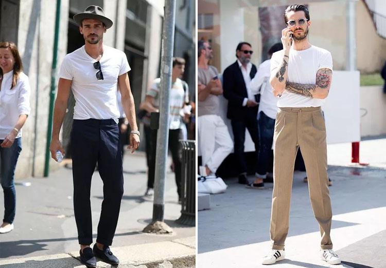 For boys with strong bodies, wearing a slim-fitting white T-shirt can better highlight the muscles of the body The lines and overall shape are so manly! But for fat guys, it is better not to choose a slim fit white T-shirt. Not only does it not modify the body shape to achieve a slimming effect, but it also makes the fat on the body nowhere to hide, making the body look fatter.