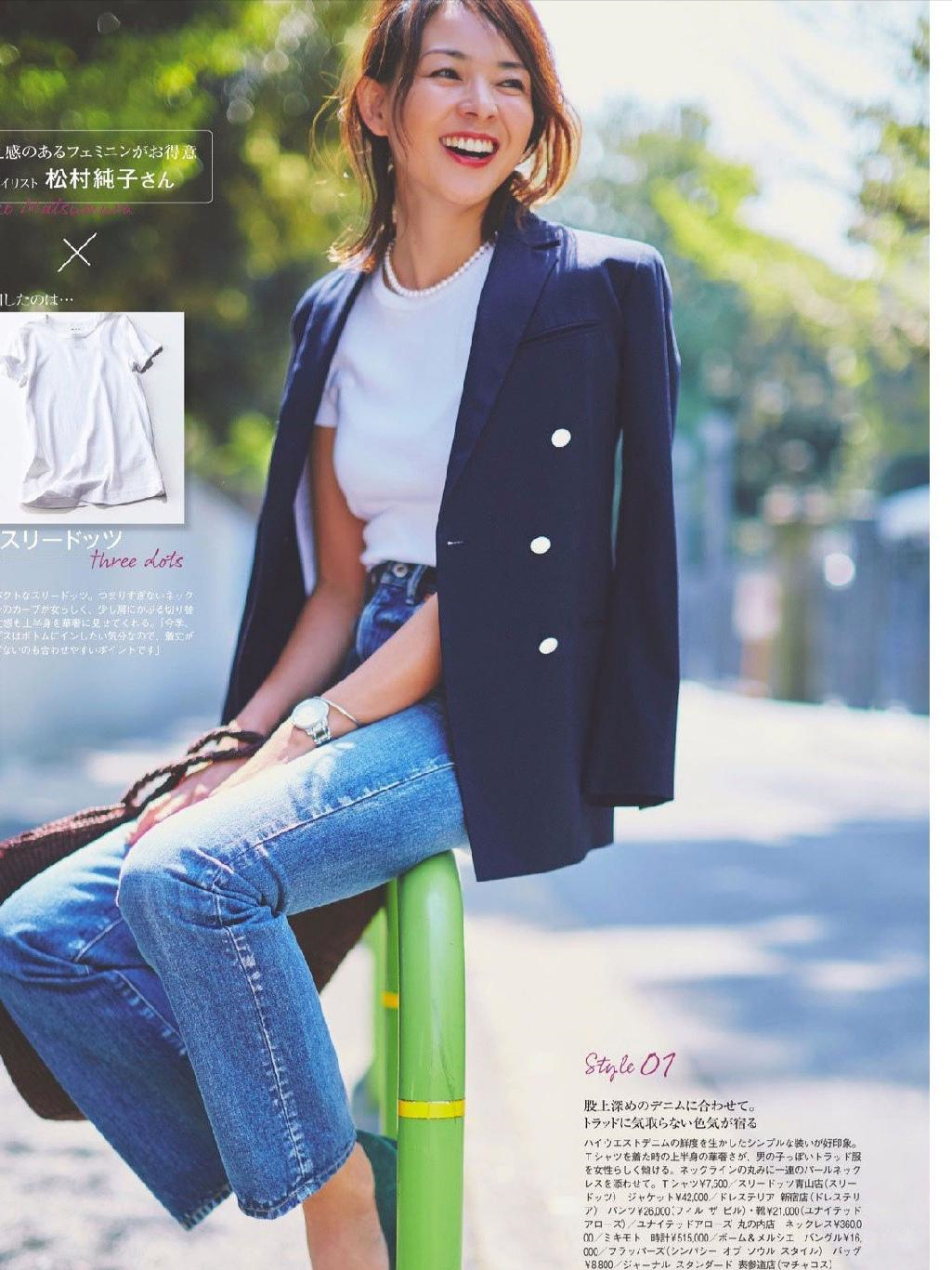 Design Pairing a simple pure white T-shirt with light-colored jeans is so simple and coordinated. However, after putting on a dark suit jacket, it brings a touch of sophistication and seriousness to the look, making it look less. It is casual and lazy, and when paired with a pearl necklace around the neck and a watch on the arm, it looks even more refined and elegant.
