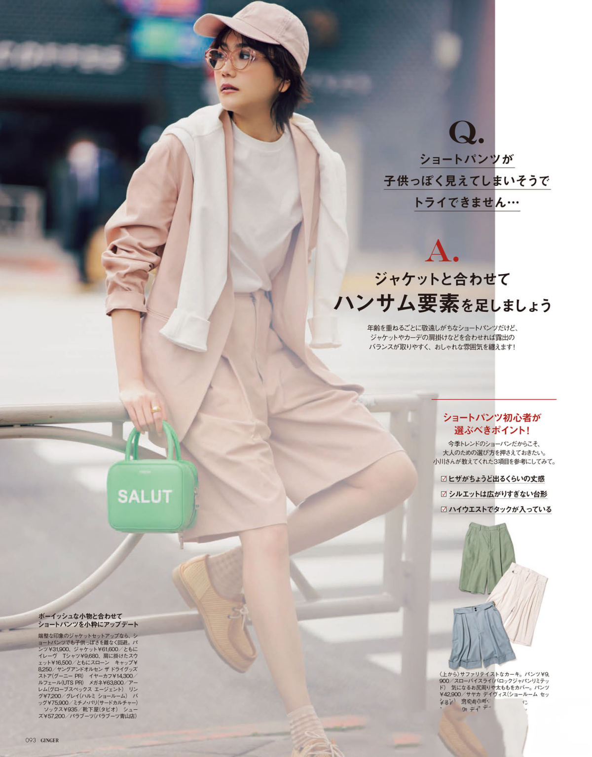 This light pink suit is paired with a pair of loose shorts on the lower body. For women, wearing these neutral-style shorts and leather shoes can give them a free and handsome feeling. Paired with accessories such as a peaked cap and shawl, it is casual and personalized.