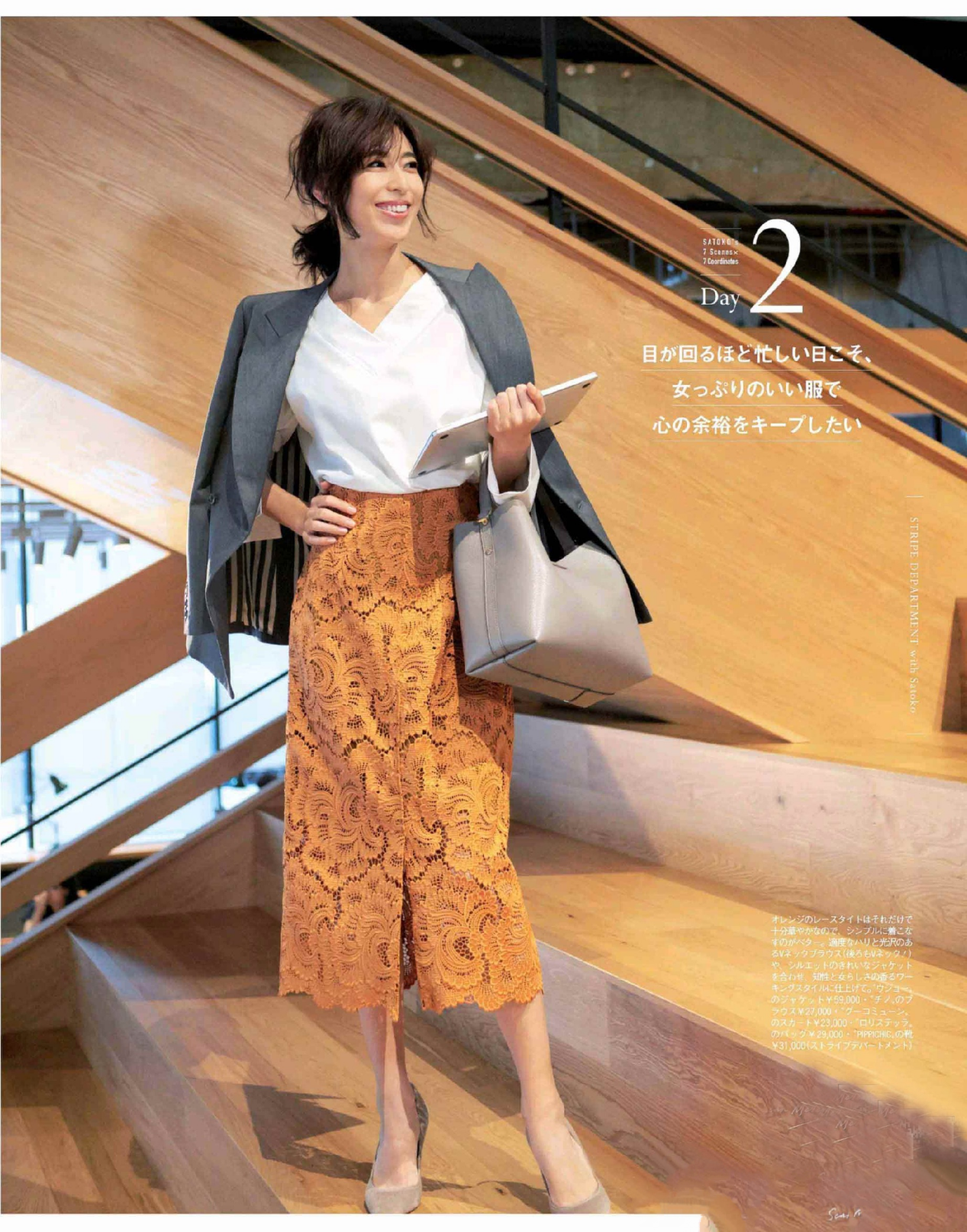 Skirts have always been one of the most feminine items. Pairing a loose-fitting suit with a skirt will show elegance and class. A dark purple high-waisted skirt, paired with a black suit and white T-shirt, casual, simple and elegant.