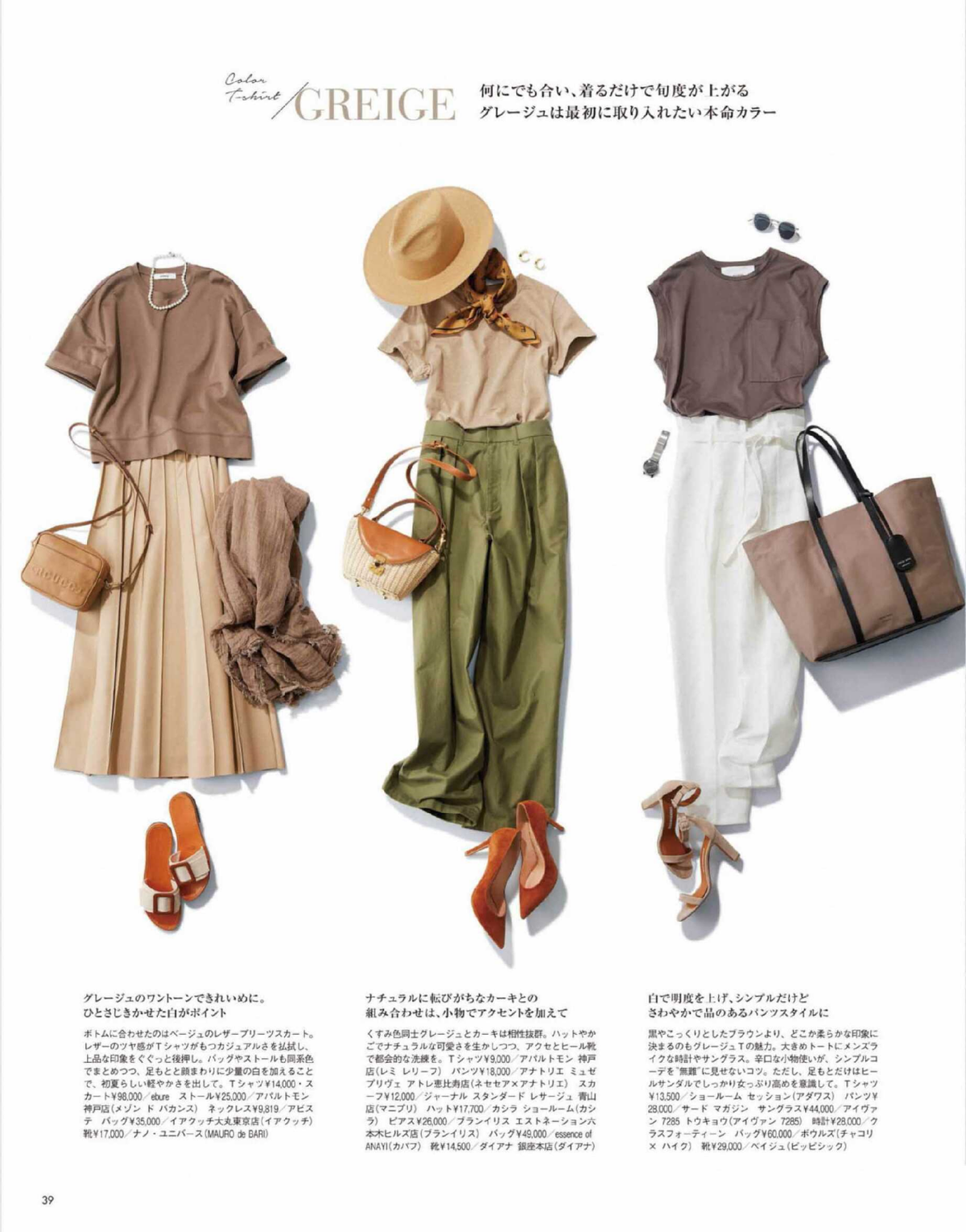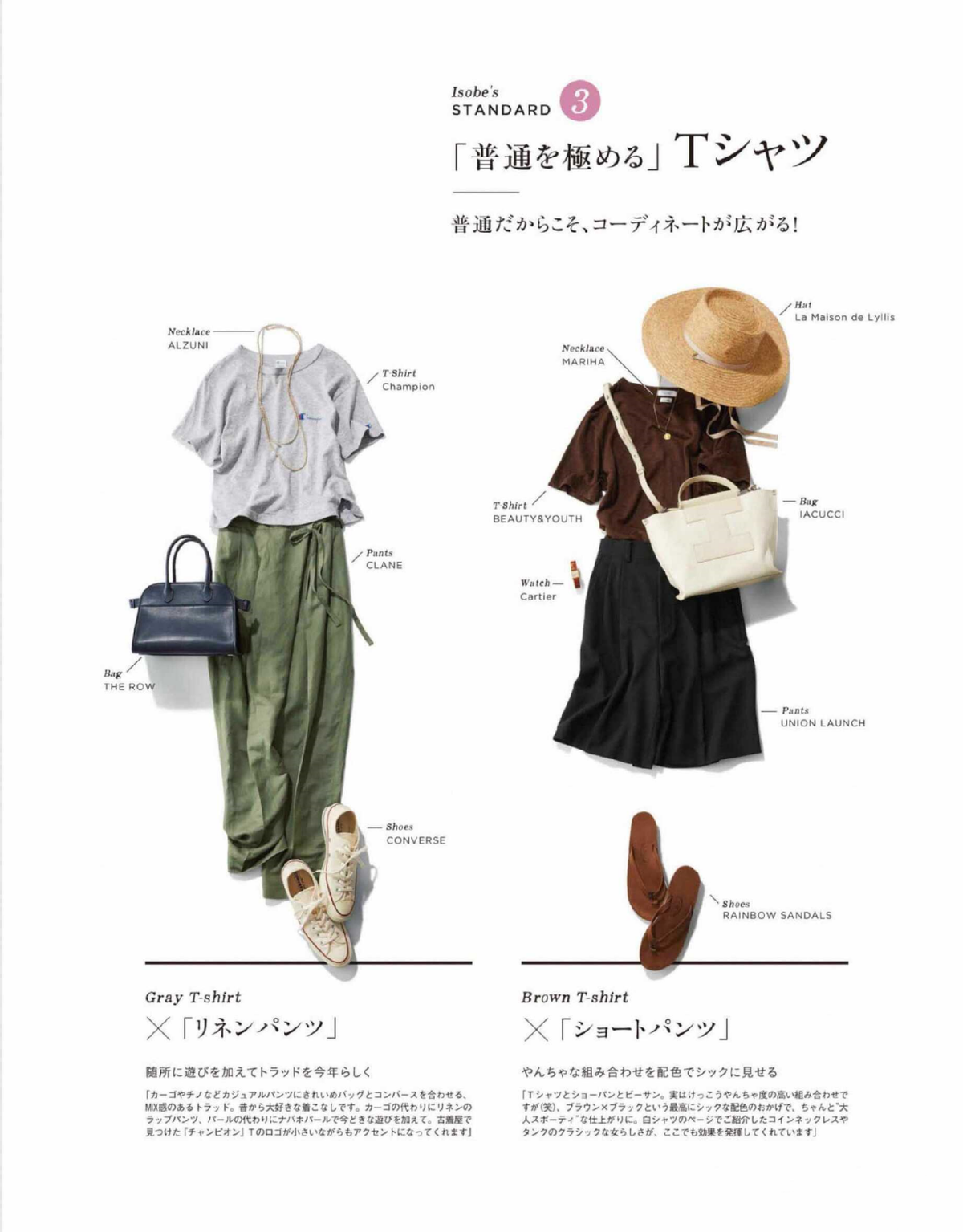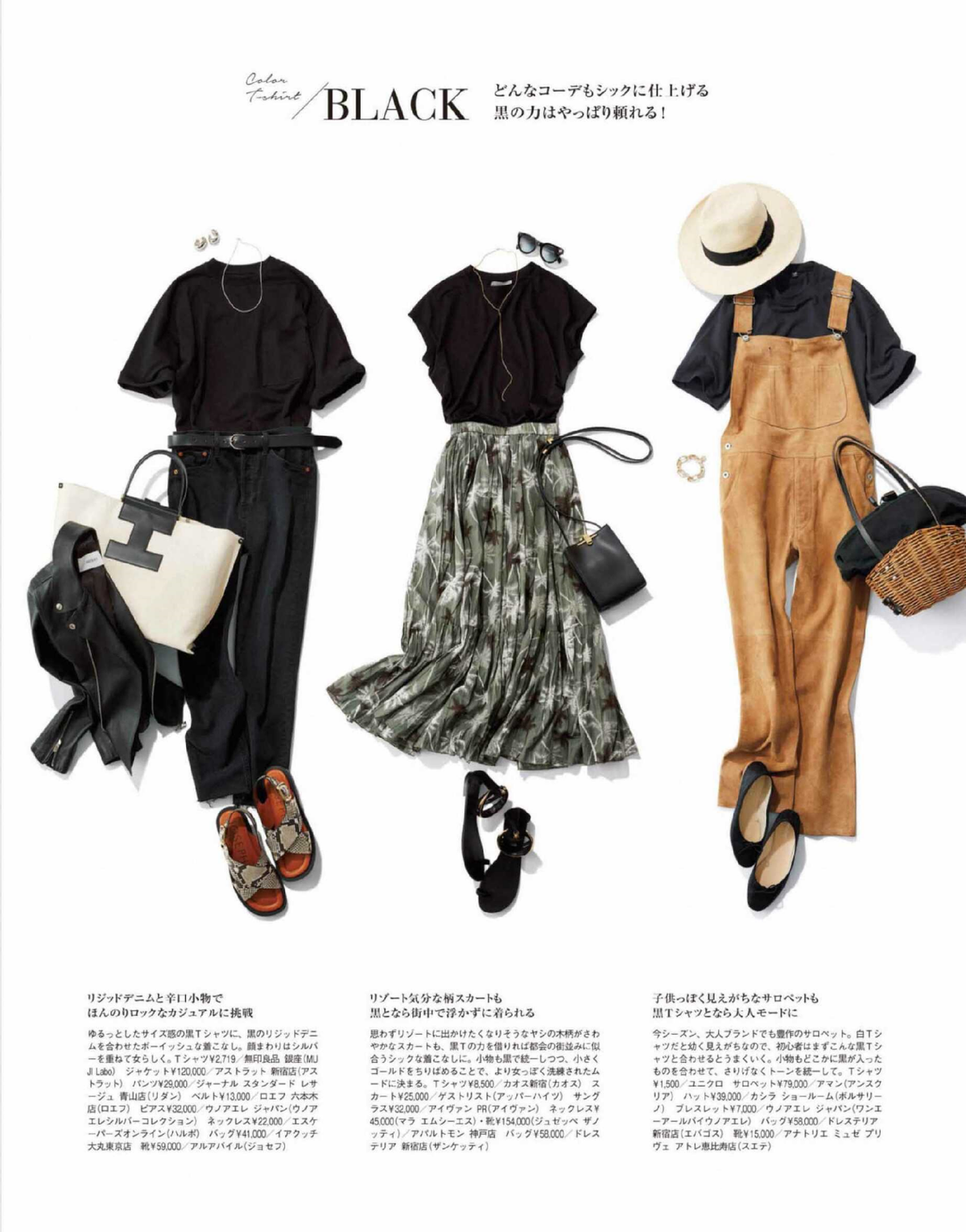 When matching a T-shirt, we need to choose some accessories that are similar to the overall style, like this light gray T-shirt paired with military green overalls In the style, a long golden necklace is added for decoration, creating a handsome personality. Another set of brown knitted short sleeves paired with a black skirt creates a fresh and age-reducing style. Paired with a woven straw hat, it can highlight the freshness of the look.