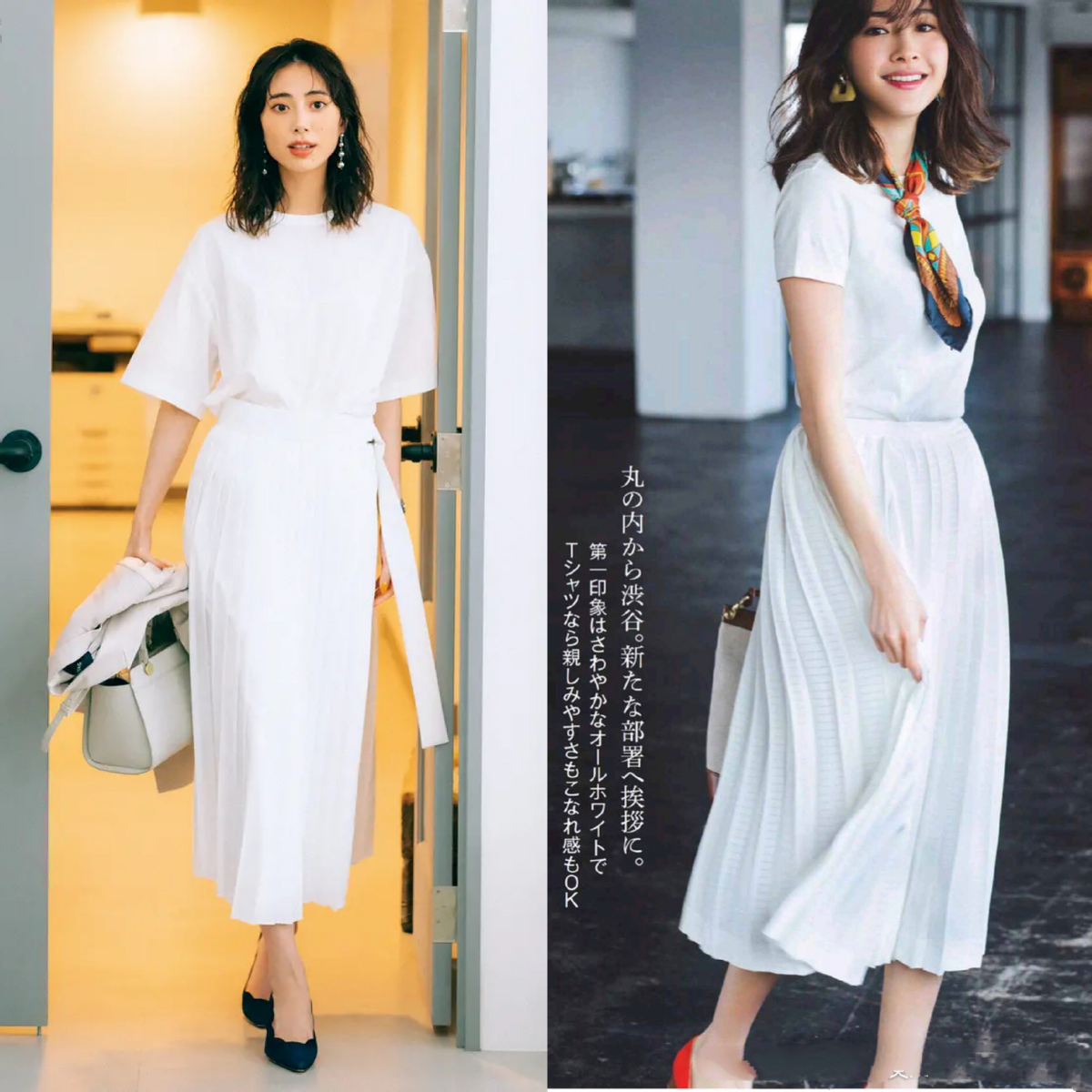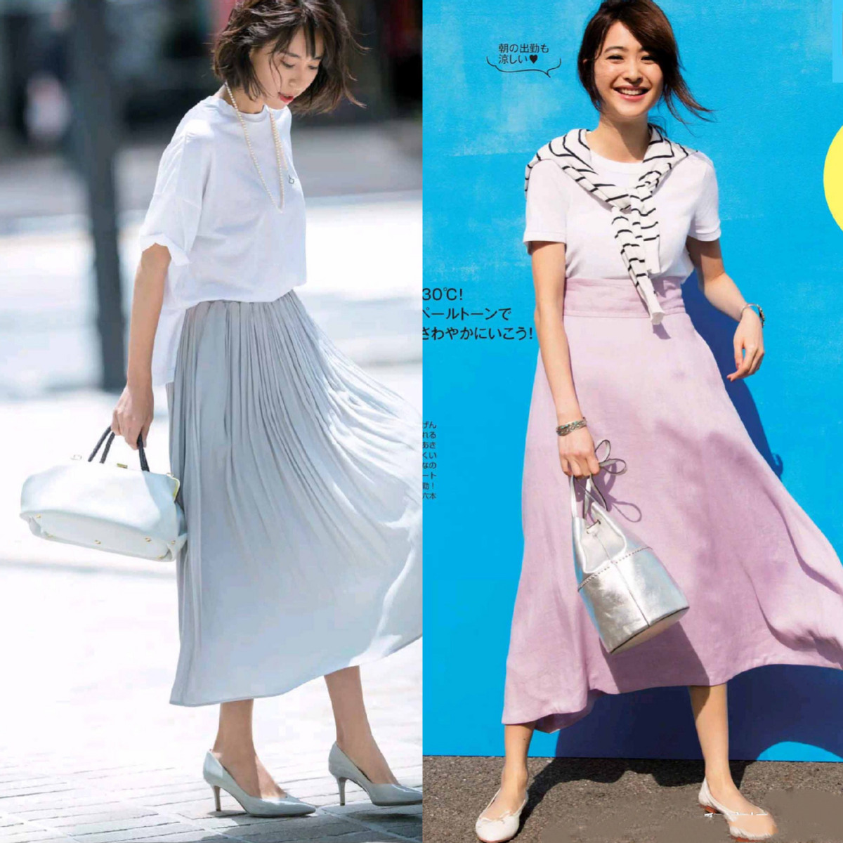 The pure white combination is simple and clean, which can well highlight the gentle and generous temperament of mature women, and the white T-shirt and loose pleated skirt Paired together, the upper body perfectly interprets the beauty of summer.