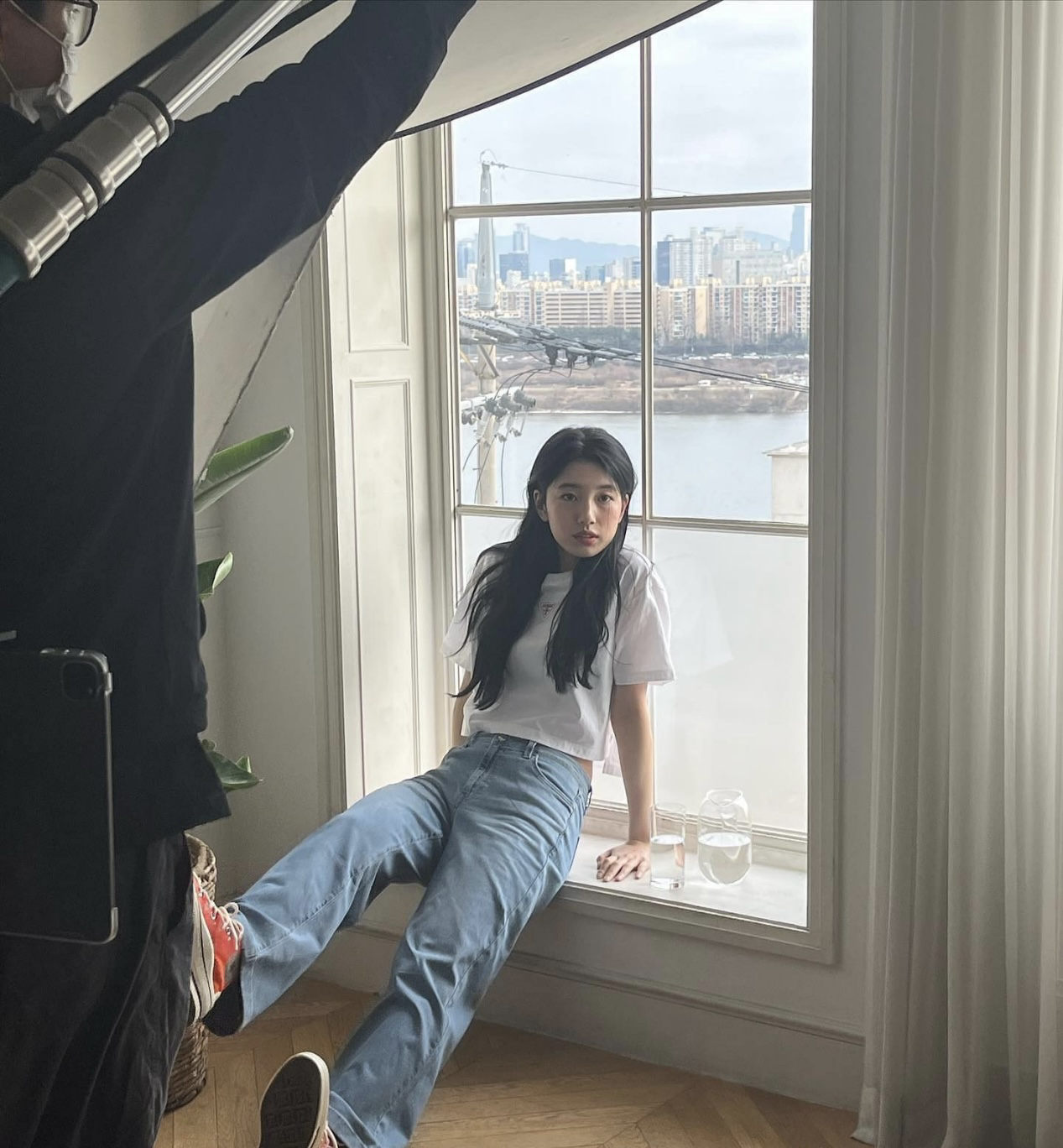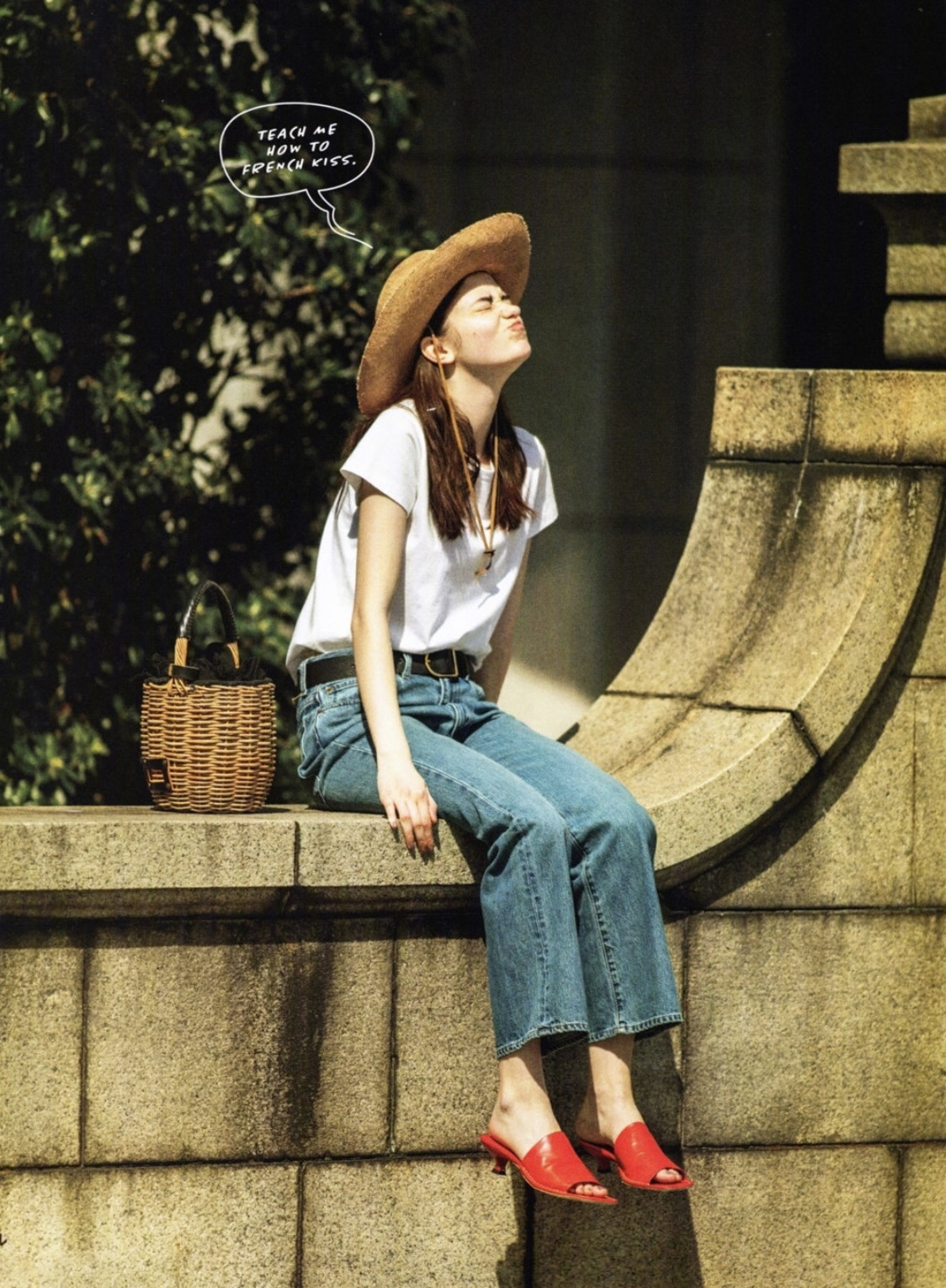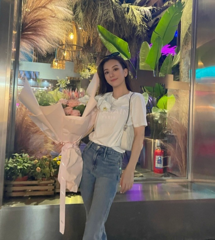 In addition to casual style, white T-shirts and jeans can also create an elegant style. It should be noted that you must choose a slightly slim white T-shirt to match with loose straight jeans.