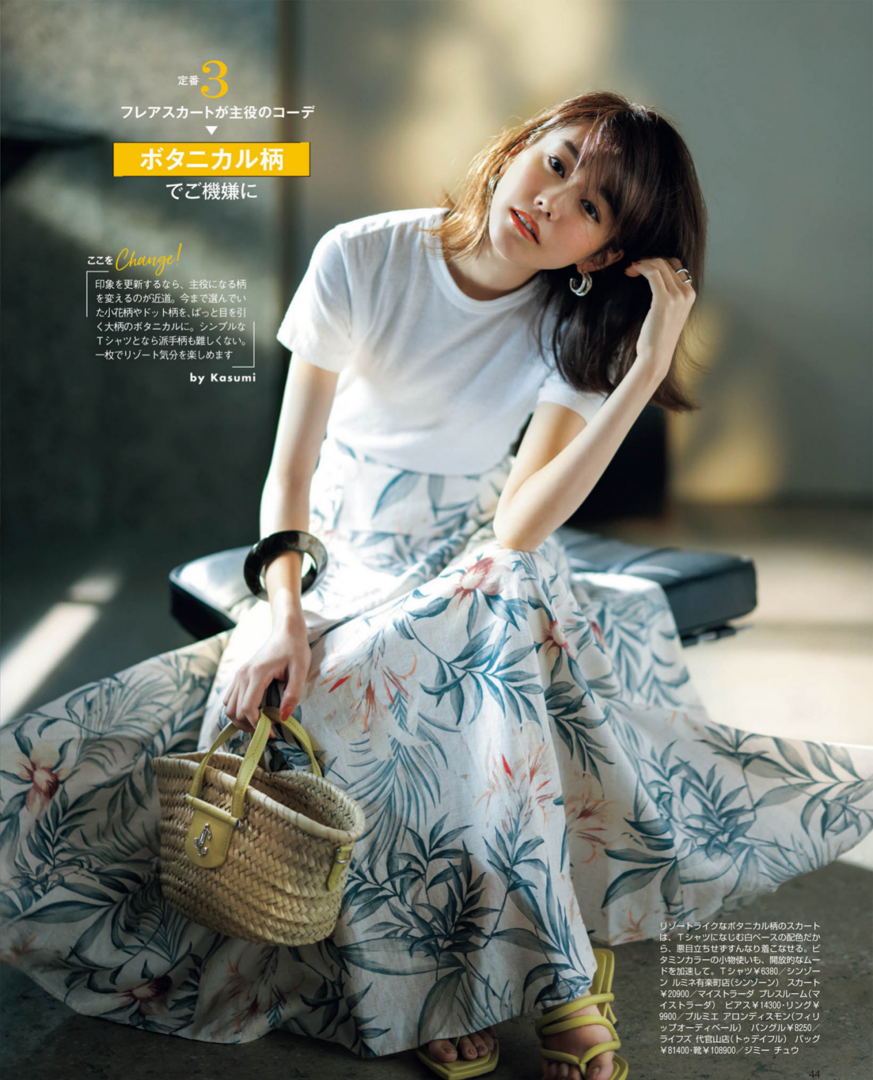 In order to cover the problem of leg shape and thick legs, many women will choose some umbrella-shaped skirts with extra long skirts, like this This white printed skirt has a particularly fresh and atmospheric pattern of green leaves and flowers on the surface. Paired with a pure white short T-shirt on the upper body, it not only makes your figure petite but also looks particularly tender.